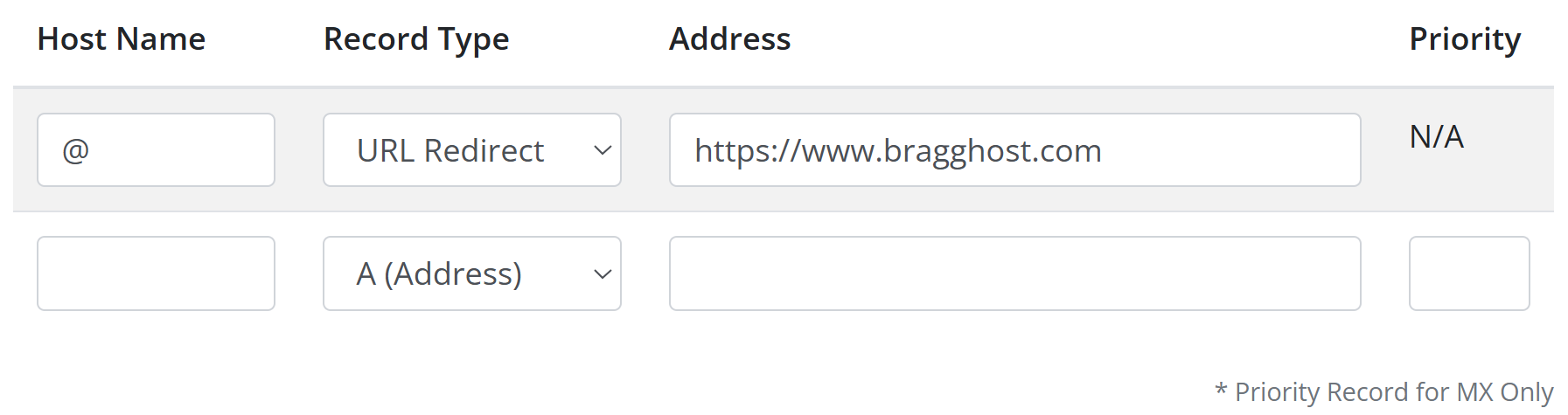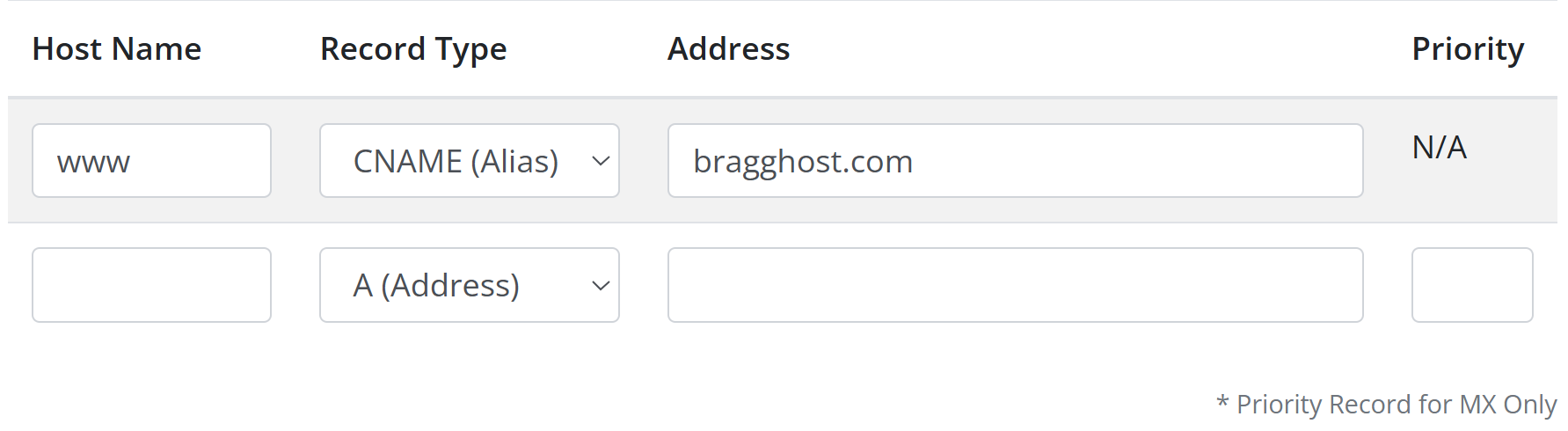 Important: DNS Management works only if your domain uses Bragghost’s DNS nameservers instead of the web hosting nameservers. (If you use cPanel nameservers like ns1.bragghost.com and ns2.bragghost.com, manage DNS via cPanel’s Zone Editor.)