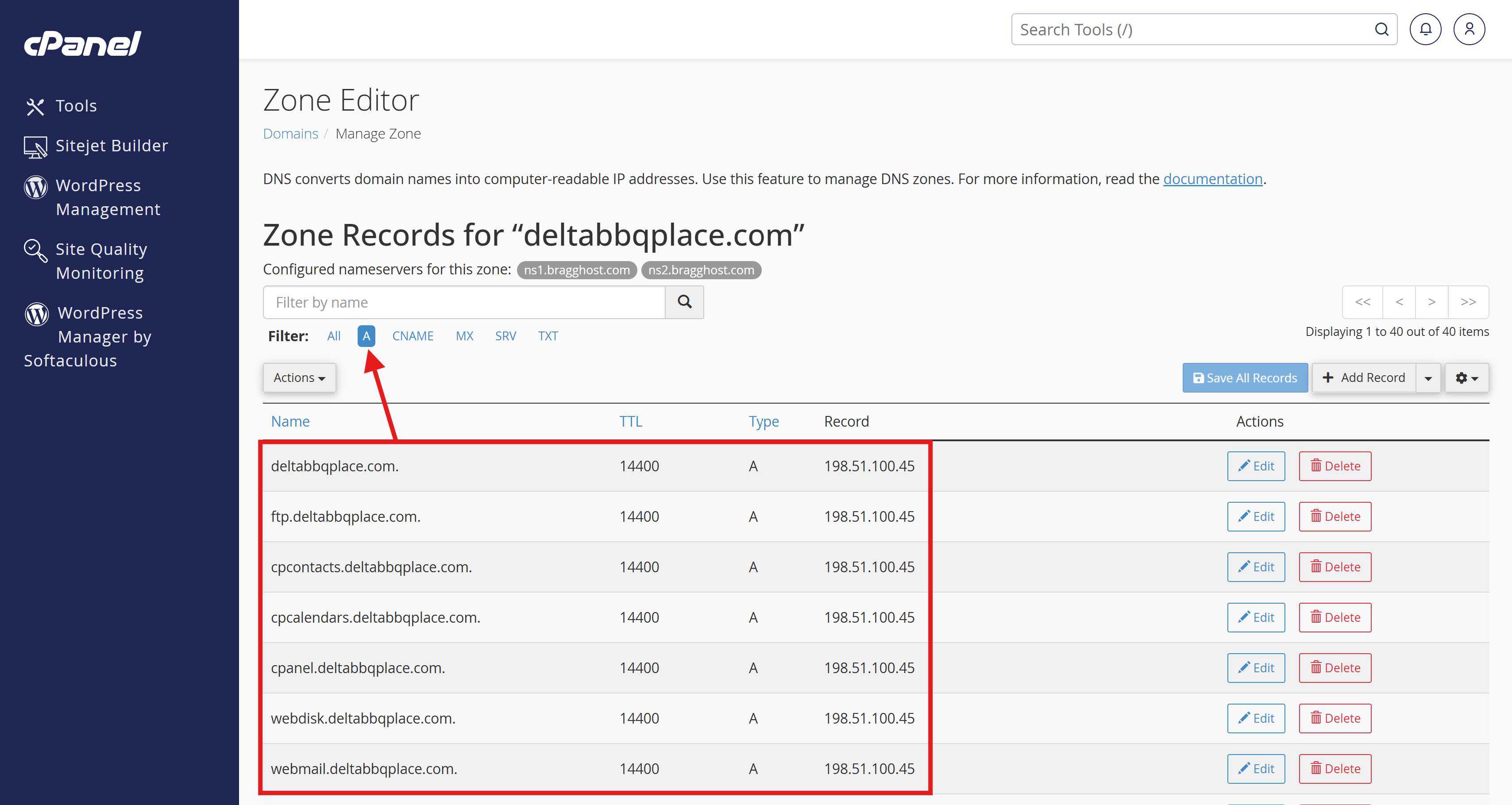 If you’ve updated your domain’s nameservers to Cloudflare, all DNS changes must be made in your Cloudflare dashboard. Bragghost’s DNS tools will not affect your domain when Cloudflare nameservers are active.