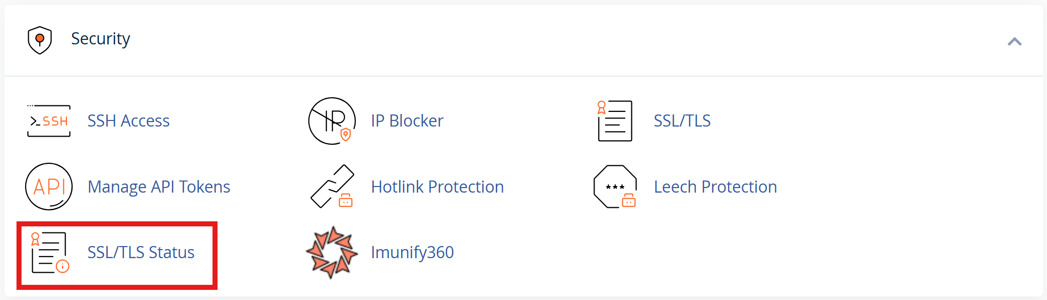 STEP 7: After you have added all your records into Cloudflare, you'll need to get your local SSL installed for your domain! Return to your cPanel and find the SSL/TLS Status icon.