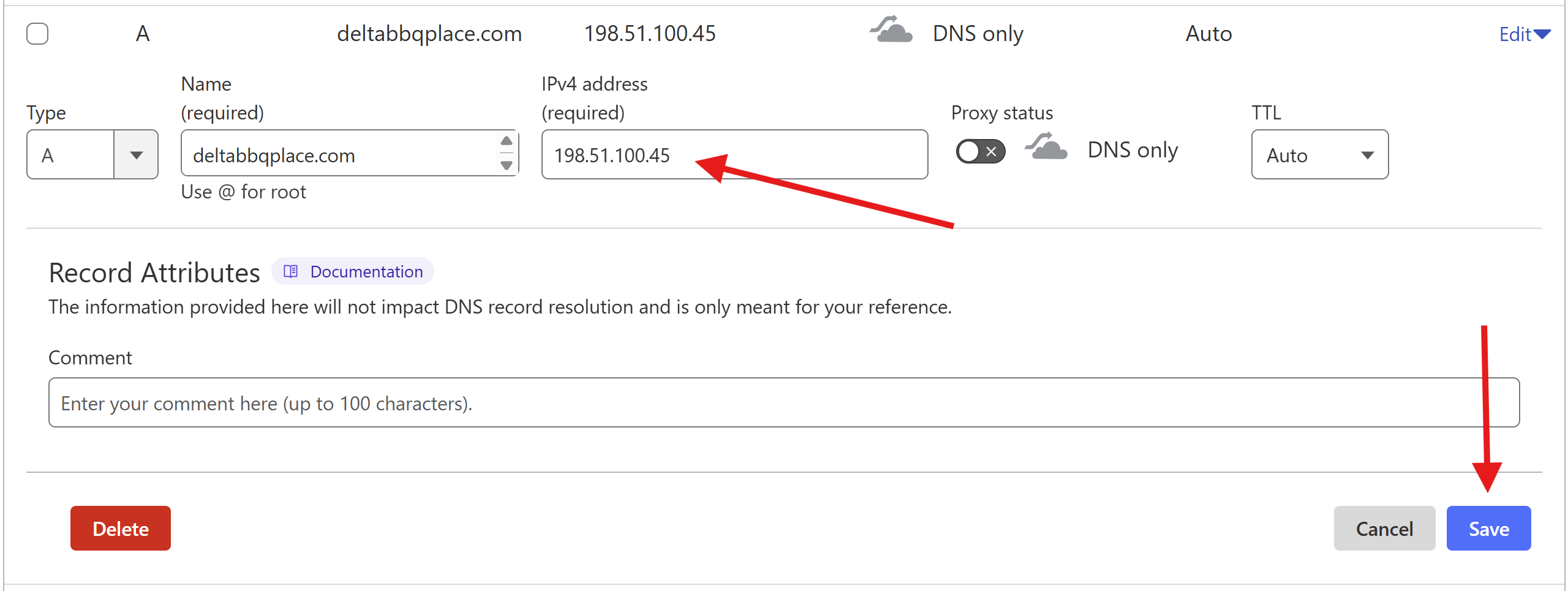 STEP 5: Change the value (IP address or whatever the record needs) and hit Save.