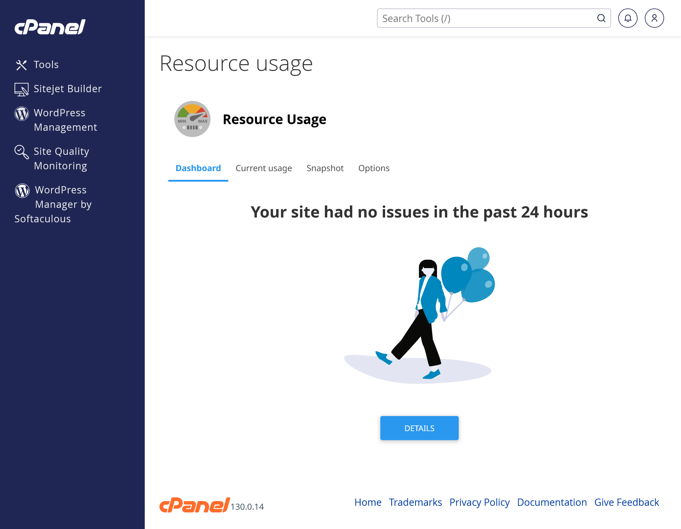 - See your current usage for memory, CPU, entry processes, and other resources.
